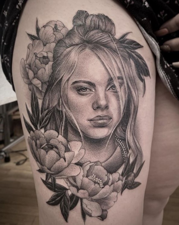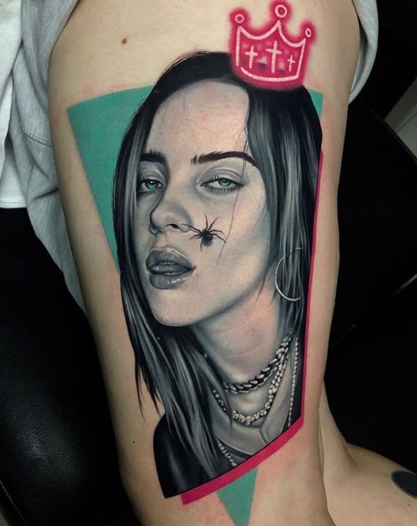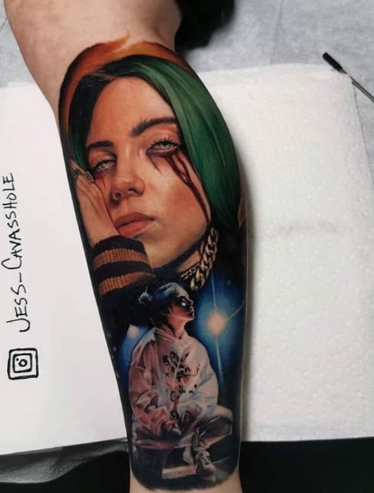 Do as these people have done and be sure to select an award-worthy tattoo artist to create an amazing Billie Eilish tattoo inspired by her lyrics, music videos, a photograph, or how her songs relate to moments in your own life. Whatever you do, do not copy any of these pieces, otherwise you’ll be saying to yourself (without a hint of irony) “I’m the bad guy, duh!”