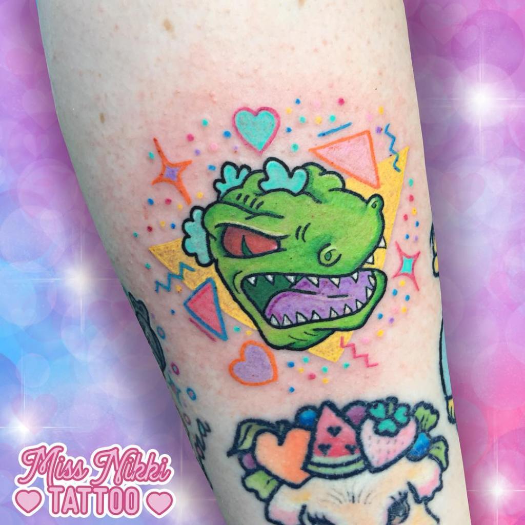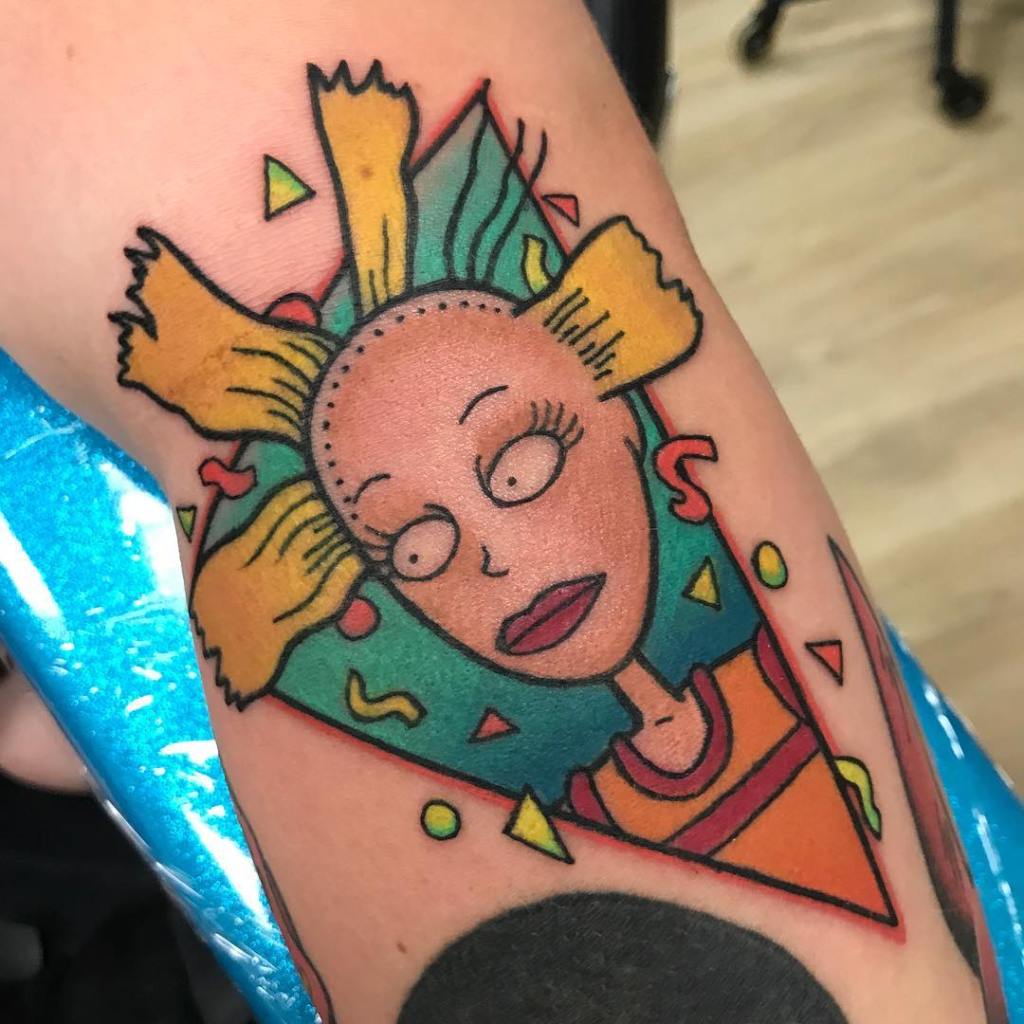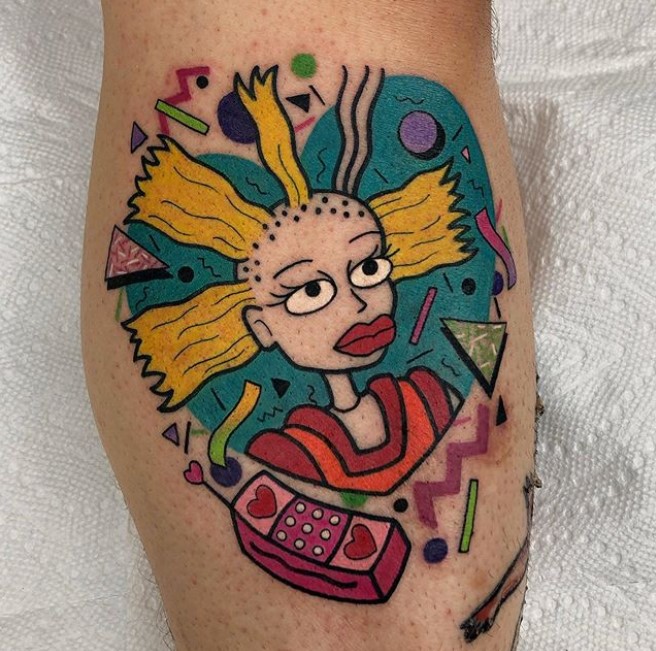 Colourful ’90s themed Cynthia (Rugrats) tattoo by @goldlagrimas