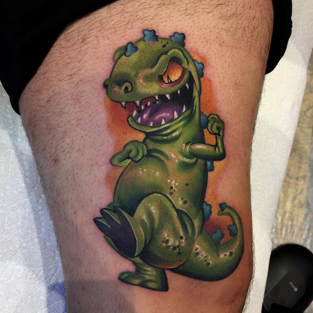 Tommy in a Reptar costume tattoo by @courtelisetattoo