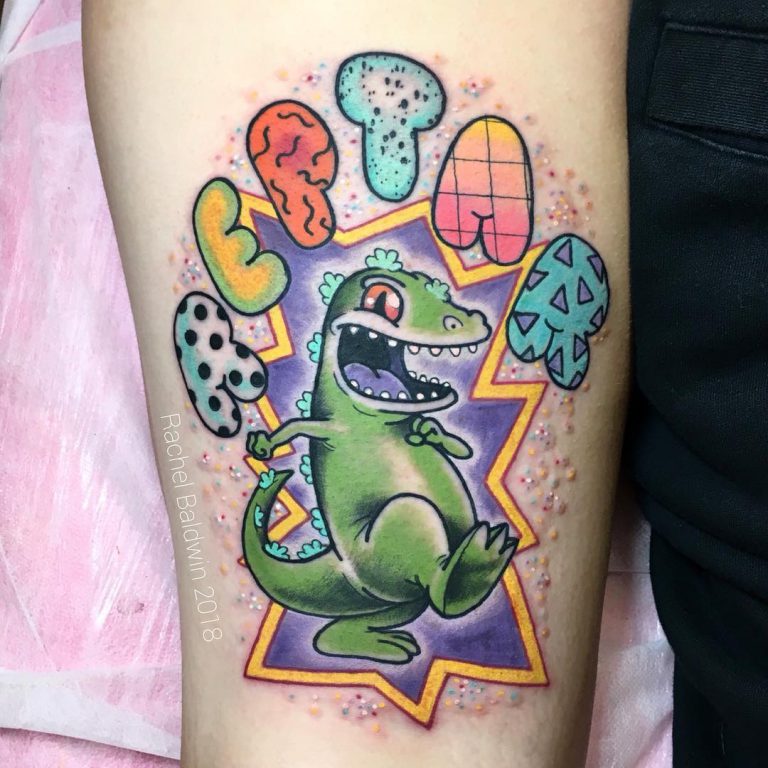 While the kids are engrossed in the Rugrats reboot, people will be reliving their childhoods and celebrating the ’90s with some sweet Rugrats tattoos. This list is an interesting mix of pieces as, like with horror movies, tattoo collectors also seem to favour the ‘villains’ from the Rugrats: Angelica and her mother, Charlotte; Reptar the dinosaur and Cynthia the doll are also prevalent online in comparison to the likes of Tommy, Chuckie, and Phil and Lil.