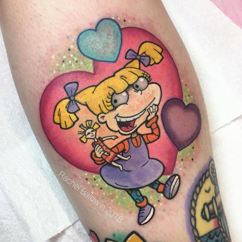 Chuckie and Angelica sparkly love hearts tattoo by @avalonrosetattoo