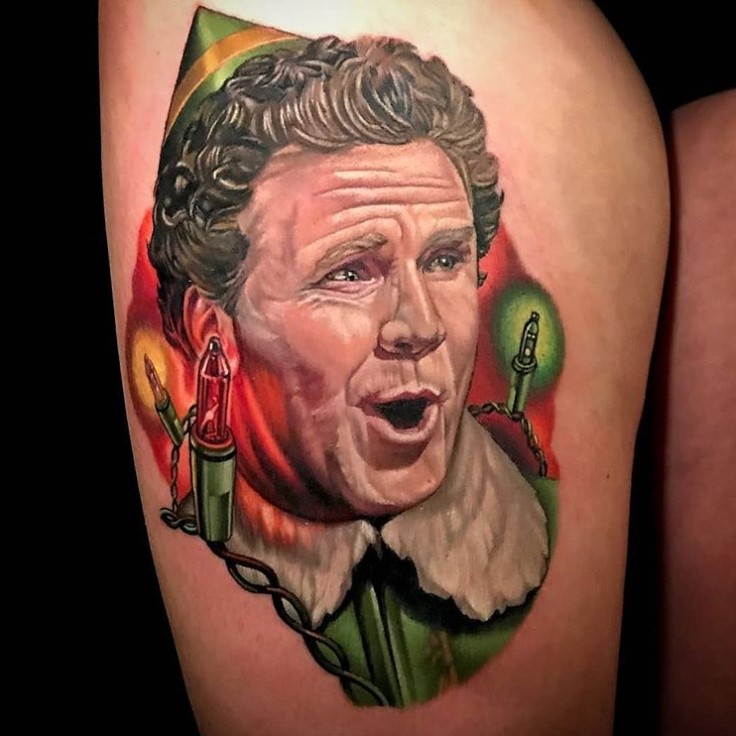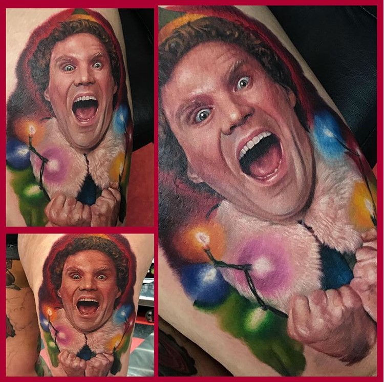 Lucky for you, you don’t need to pass through the seven levels of the Candy Cane forest, through the sea of swirly twirly gum drops, and then walk through the Lincoln Tunnel to view these Elf movie themed tattoos.