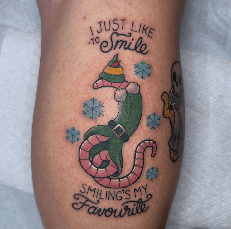 If you feel sad that Christmastime is too short, you could cheer yourself up with an Elf inspired tattoo. Now is the perfect time for your yearly viewing of Elf to begin formulating a concept for a permanent reminder of your favourite holiday to carry with you all year round.