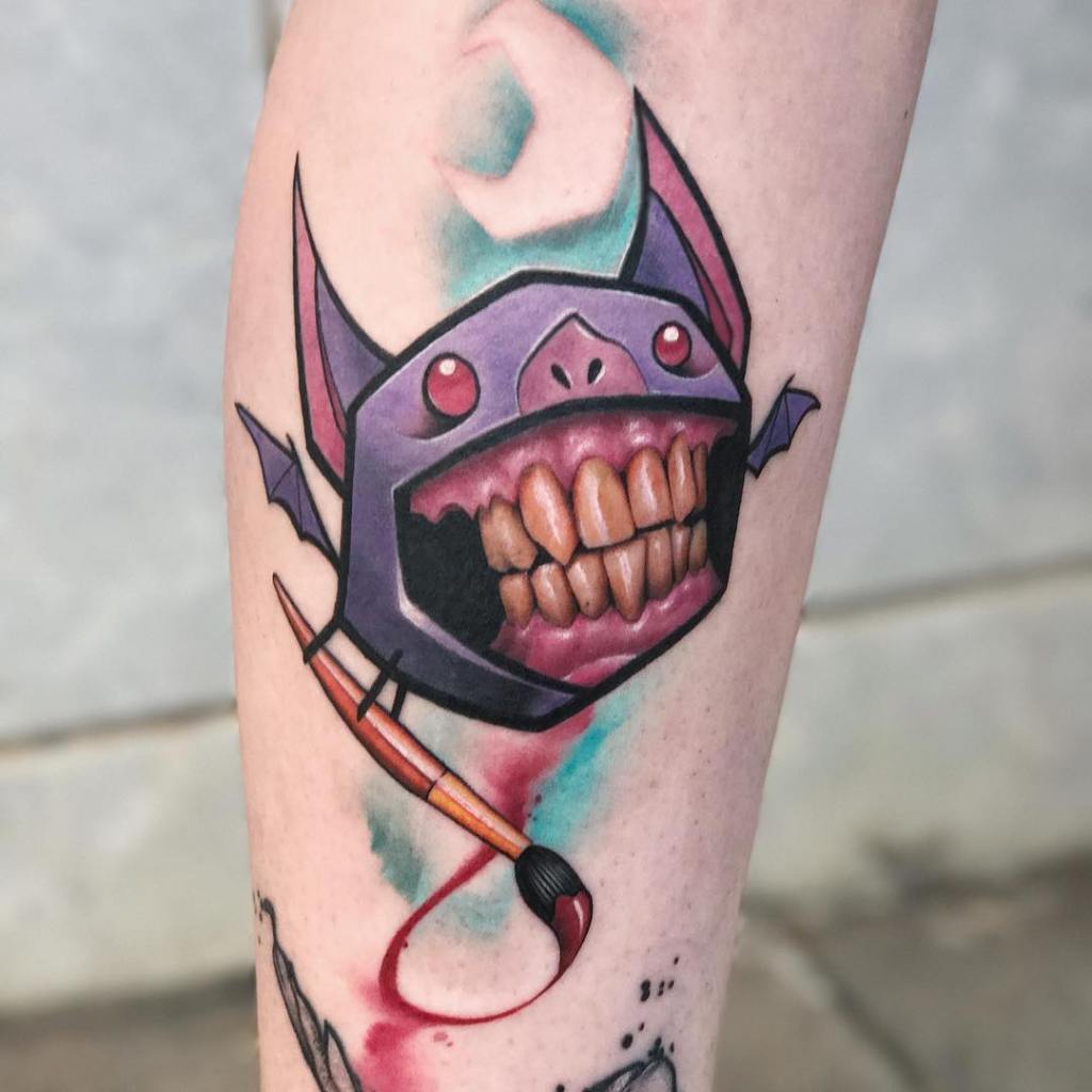 Bat and paintbrush creepy critter tattoo by @joshpeacock_obe1