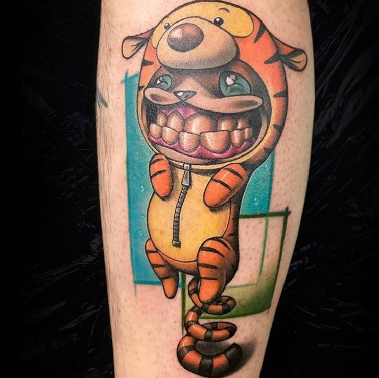Otter in a Tigger onesie creepy critter tattoo by @joshpeacock_obe1