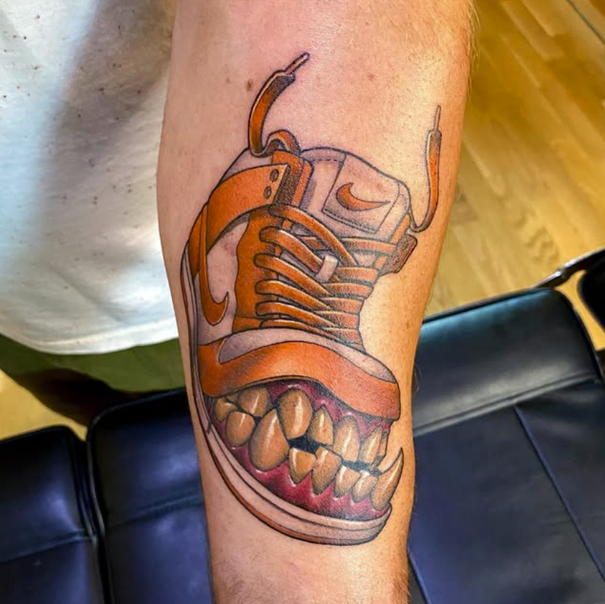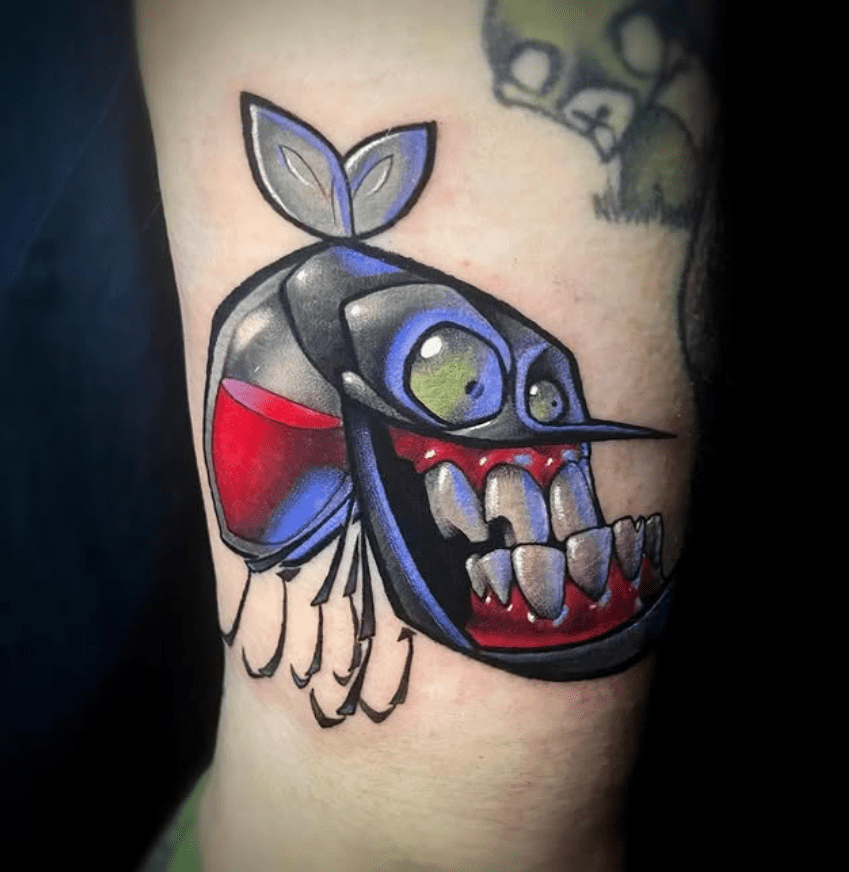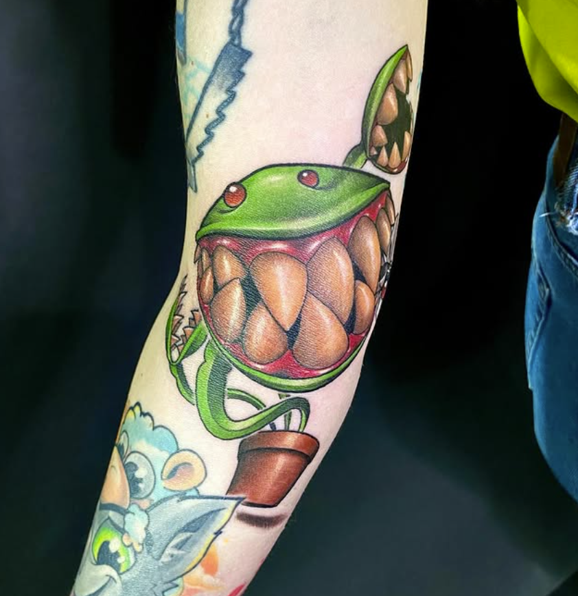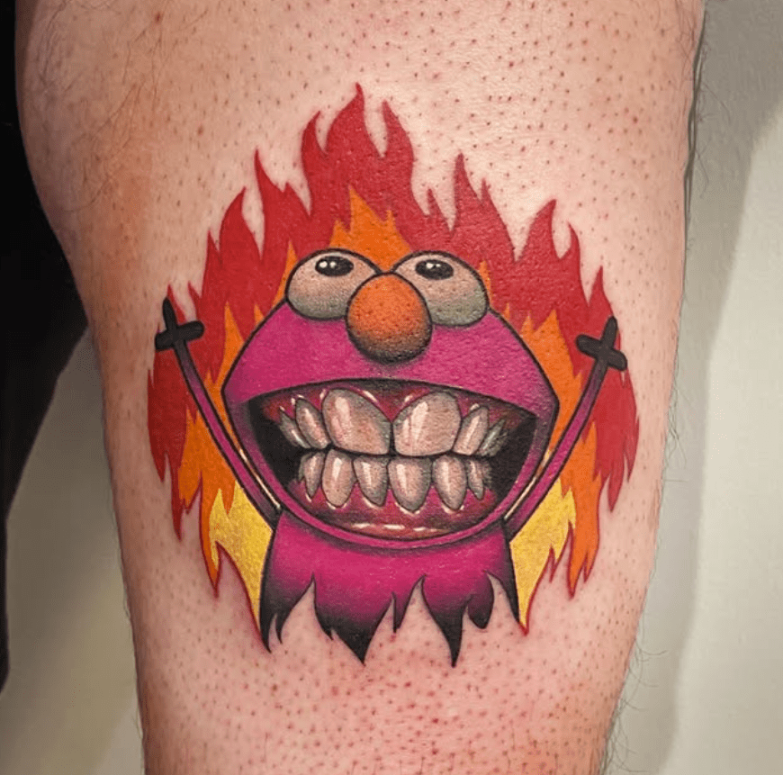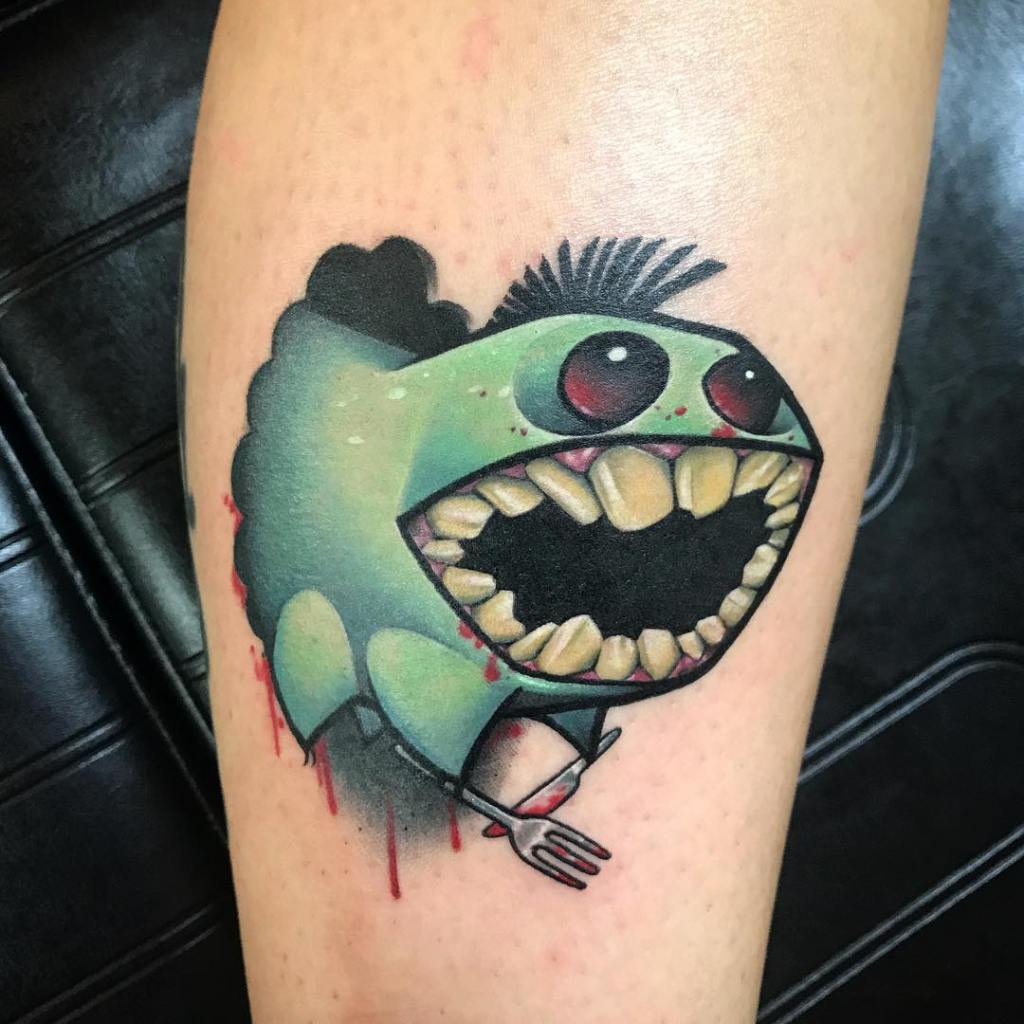 While these tattoos aren’t bloody or gory, they do give off a creepy vibe. Just imagine how terrifying it would be if animals, cartoon characters, and even inanimate objects suddenly grew human-like mouths and teeth. Thanks to Peacock, you don’t need to imagine it because he’s made all your nightmares come true.