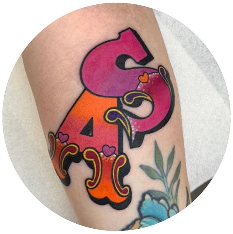 If you’re a fan of typography or graphic design, or looking for a simplified but bolder tattoo to represent someone’s name (without getting a cursed name tattoo), a letter tattoo from Nancy might be right for you. What could be such a simple piece is made all the more impressive and creative with Sam’s decorative flair added to each letter.