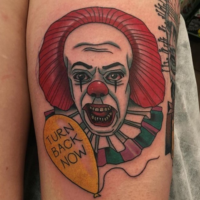 Aside from the stupid and scary tattoos I’ve selected to feature, Baldwin’s online portfolio also consists of animals, pop culture characters, and traditional style portraits in both black and grey, and colour. Pick any genre of music, television show or film and Baldwin can produce a classic tattoo that will last for decades to come.