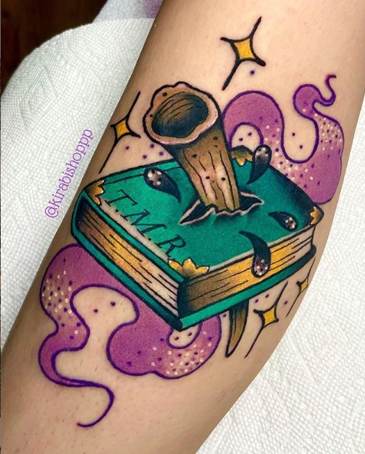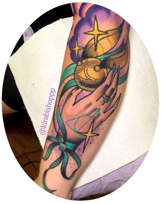 I struggled for a while to come up with a clever headline for this TAP when it was literally staring at me. Amongst other things, you’ll find an abundance of Harry Potter and Halloween themed tattoos, along with images of healed pieces on Bishop’s Instagram feed.