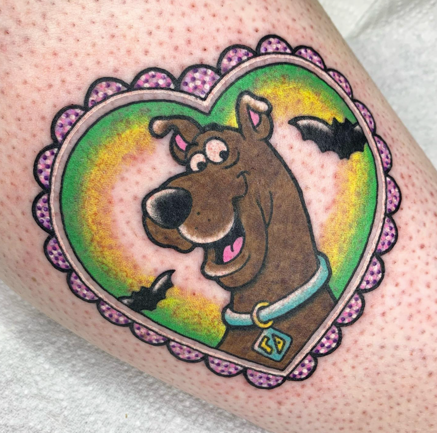 Decorative and sparkly Scooby Doo love heart tattoo by @abbiehoskintattoo