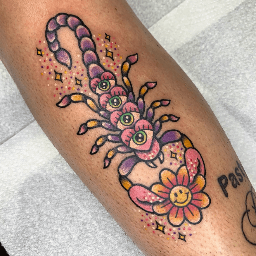 Pastel and sparkly scorpion tattoo by @abbiehoskintattoo
