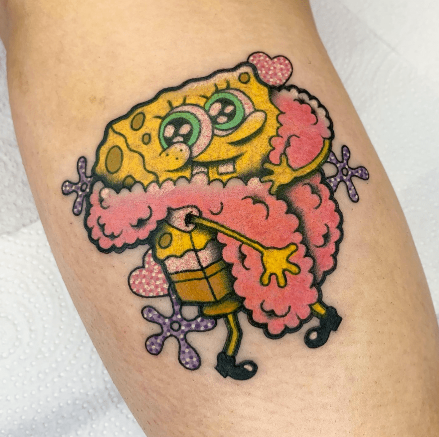 Sassy SpongeBob SquarePants tattoo by @abbiehoskintattoo