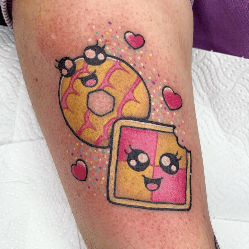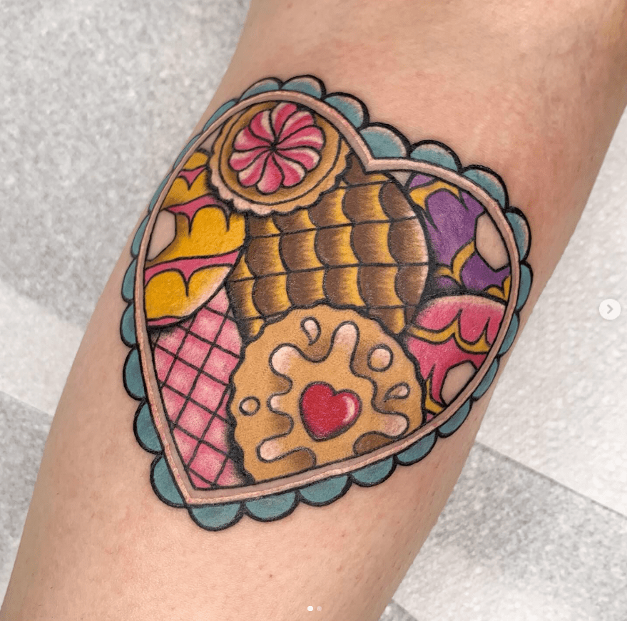 Selection of British biscuits decorative love heart tattoo by @abbiehoskintattoo