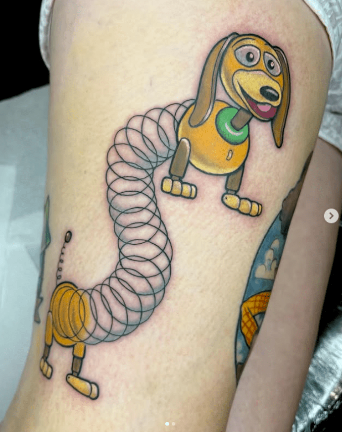 Slinky Dog (Toy Story) tattoo by @abbiehoskintattoo