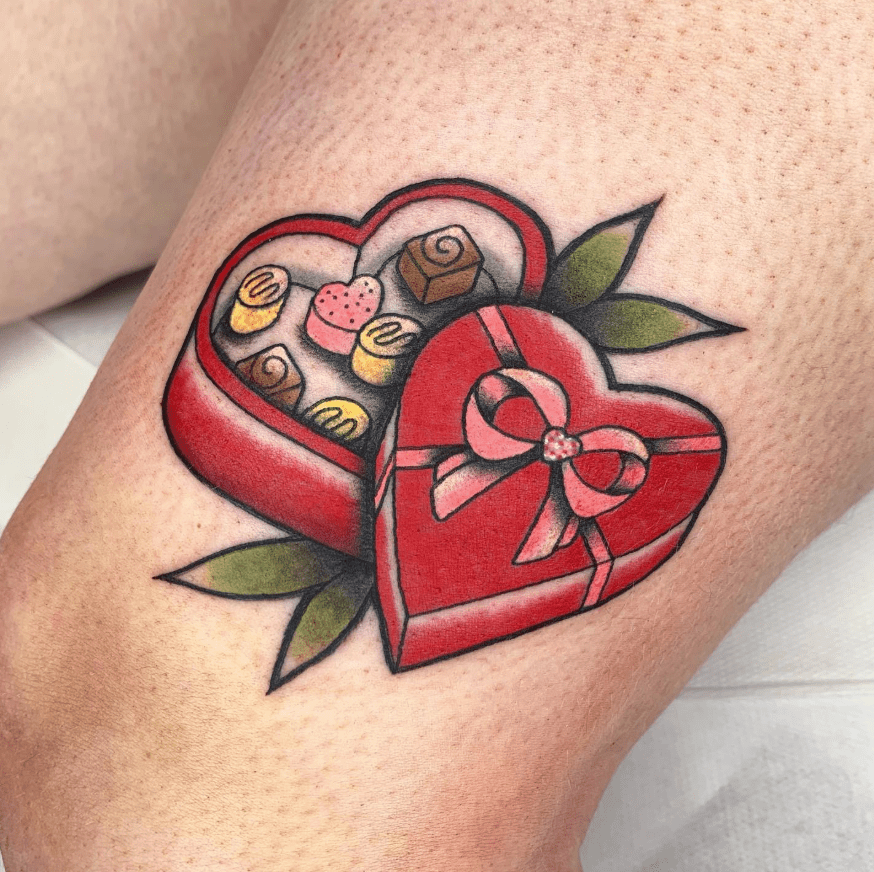 Vintage chocolate box tattoo by @abbiehoskintattoo