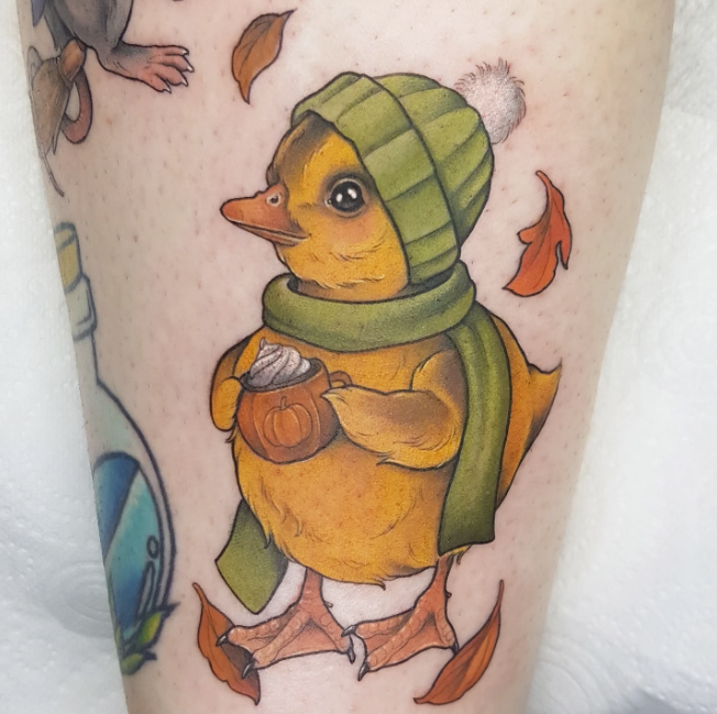 The autumnal vibes of these tattoos are certainly a distraction from the flaming hot weather of the Australian summer, and perhaps can do the same for those of you in the middle of winter, dealing with ice and several feet of snow. Autumn weather is the perfect time of year because “it’s not too hot, it’s not too cold, all you need is a light jacket.” (IYKYK)