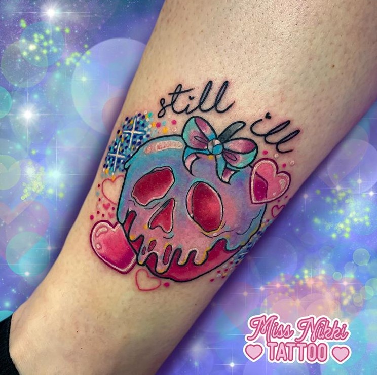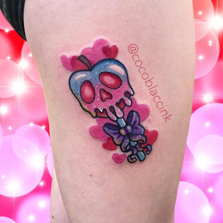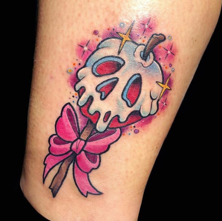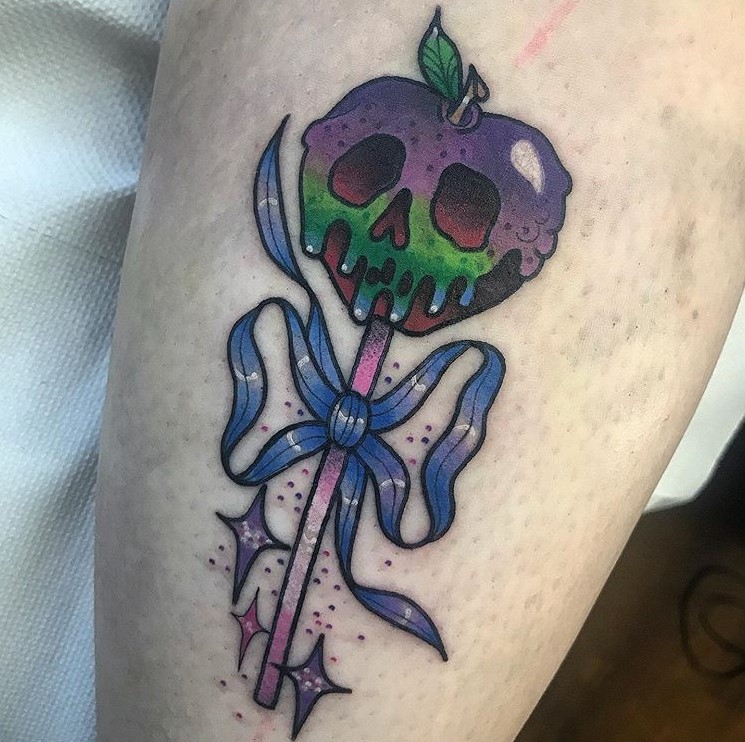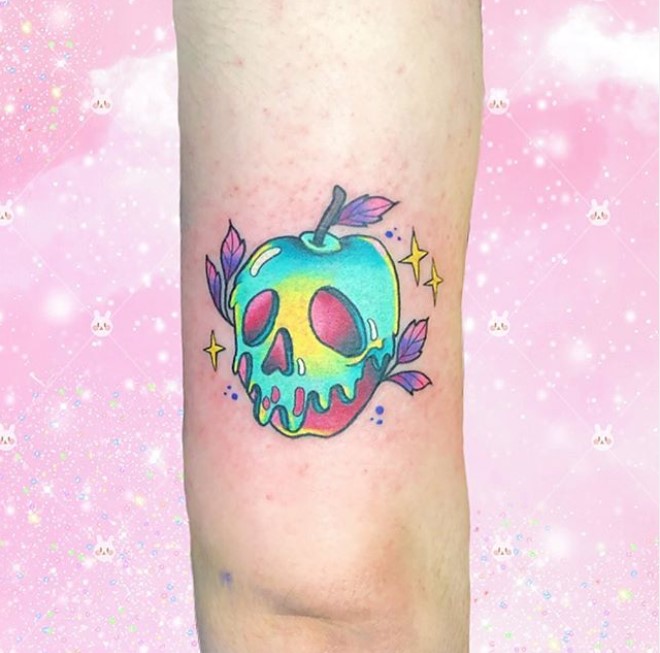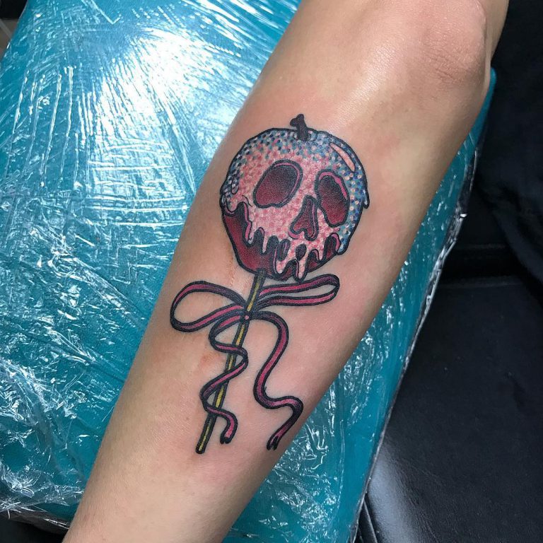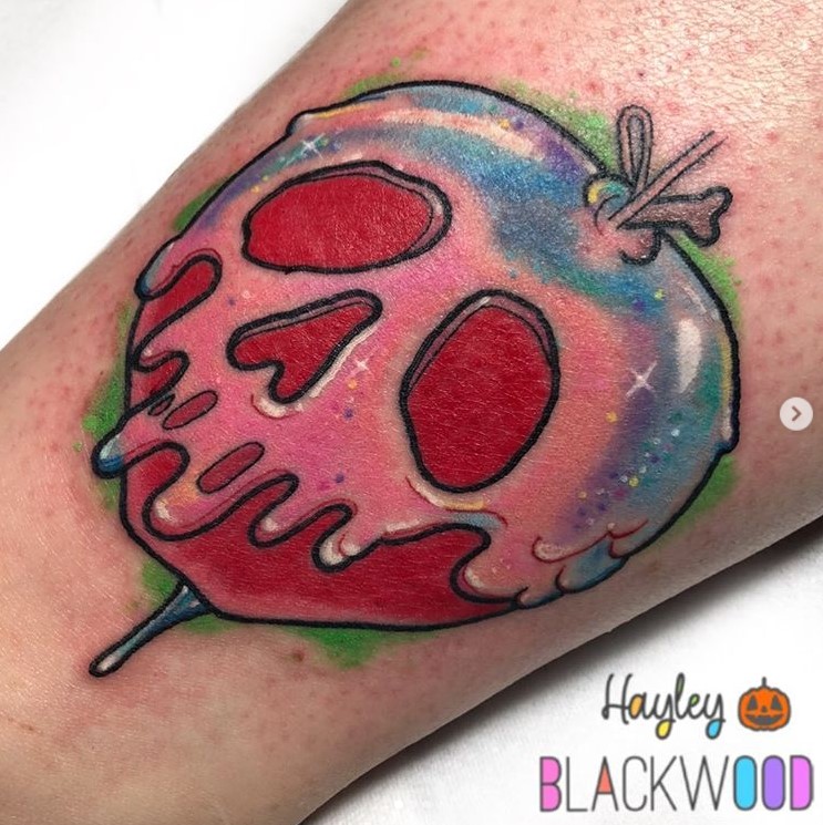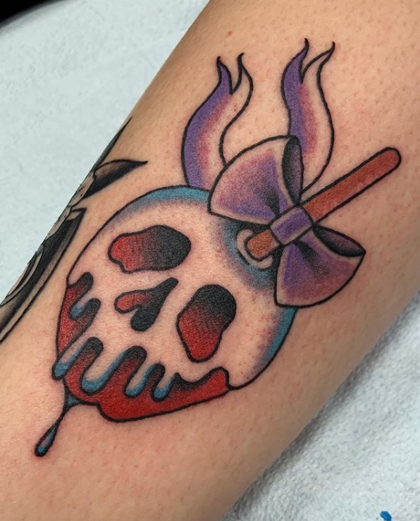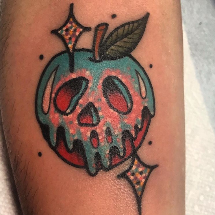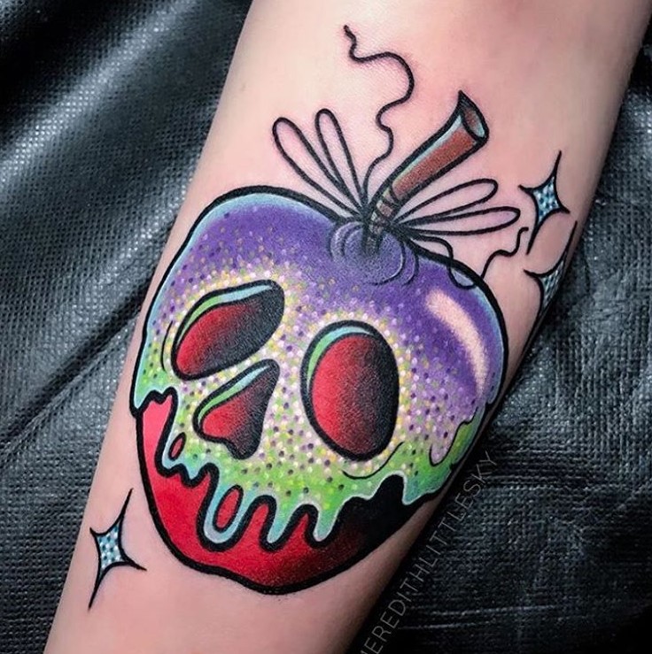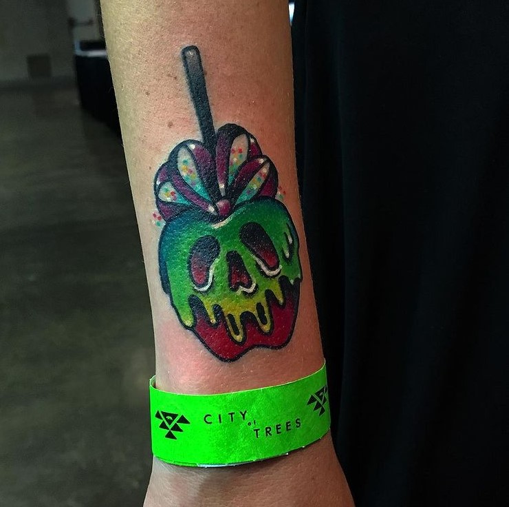 Sparkly poison candy apple tattoo by @chelseytattoos