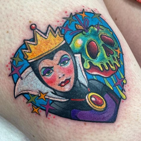 Evil Queen and poison apple love heart tattoo by @sarahktattoo