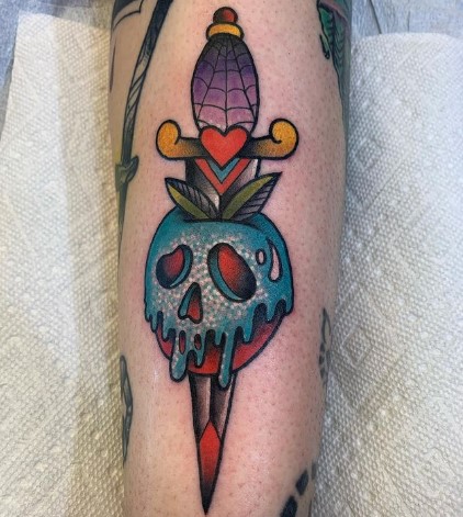 Poison apple and dagger tattoo by @kellymcmurraytattooer