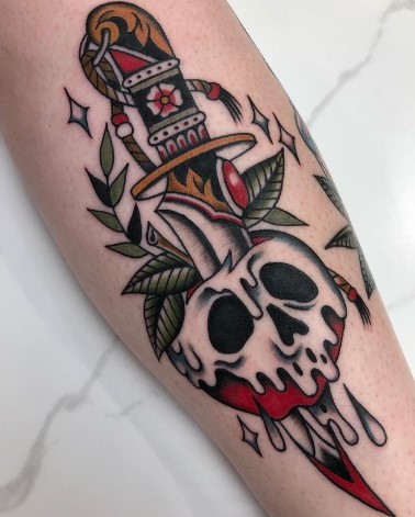 Traditional dagger and poison apple tattoo by @colbywhite_rlt