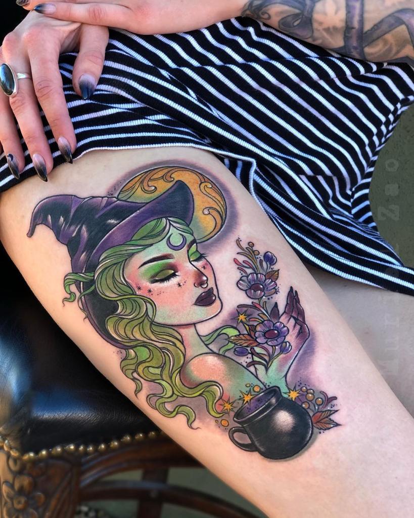 It is in the body art realm where a witch takes many forms and are presented in every tattoo style known, as you’ll see when scrolling through this list.