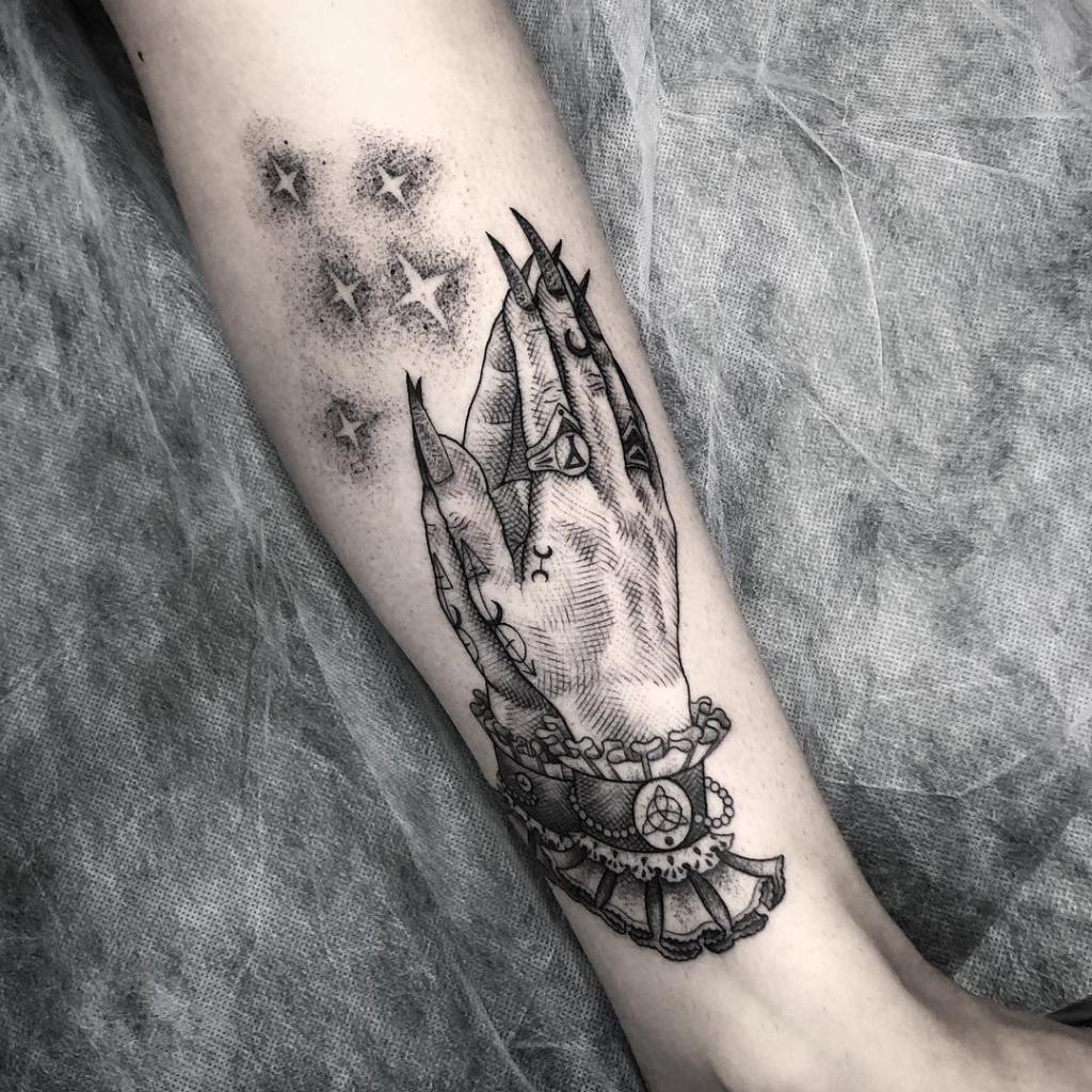 Blackwork witch hand tattoo by @eddylou
