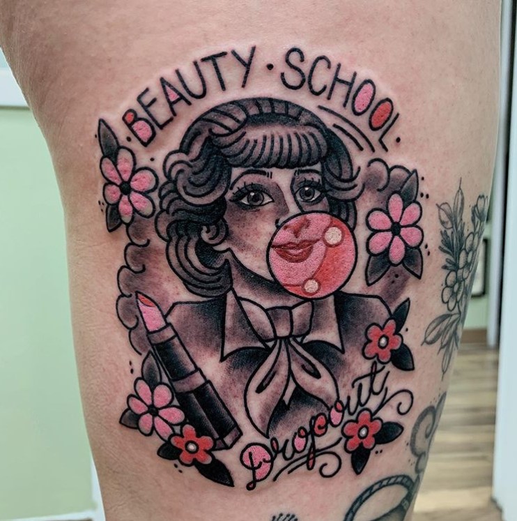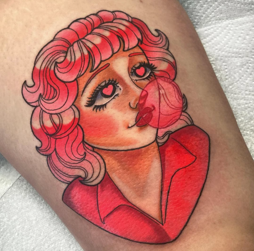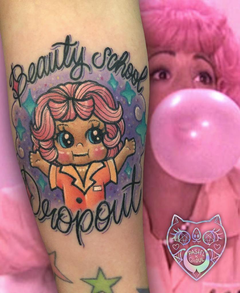 If we follow the Mean Girls rules of wearing pink on Wednesdays, then surely if you were to get a tattoo of one of the iconic Pink Ladies from Grease, more specifically Frenchy, you would have to book your appointment for a Wednesday?