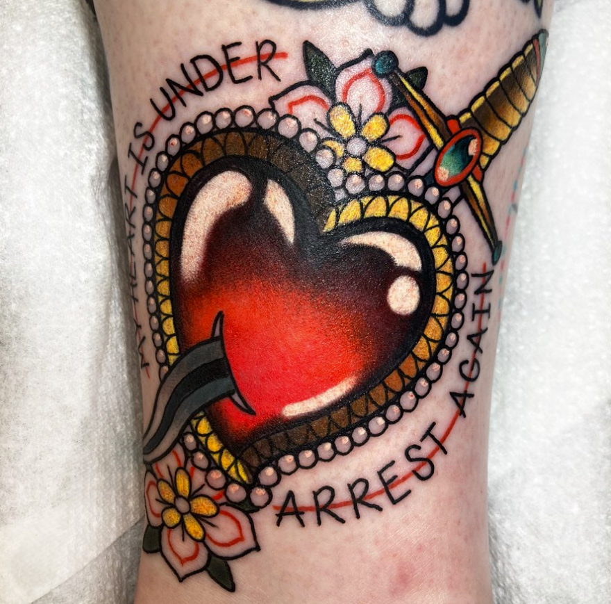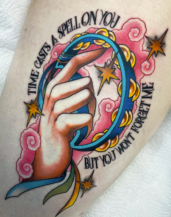 For this TAP, I’m focusing on Amy’s music tattoos. They cover various musical genres, both solo artists and bands. Her neo traditional style with rich colours and decorative embellishments meld lyrics and imagery for a special piece for each client. Keep scrolling to view this selection of her work and begin thinking about about song of which you would get a tattoo.